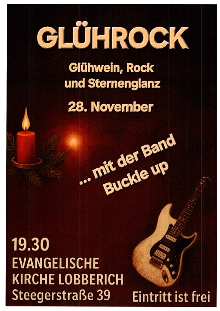 Glühwein, Rock und Sternenglanz mit der Band „Buckle up“ Es ist keine Anmeldung erforderlich. Der Eintritt ist frei.
